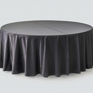 Apaļo galdu noma ar baltu galdautu. 150 cm apaļais galds ar galdautu paredzēts līdz 8 personām.